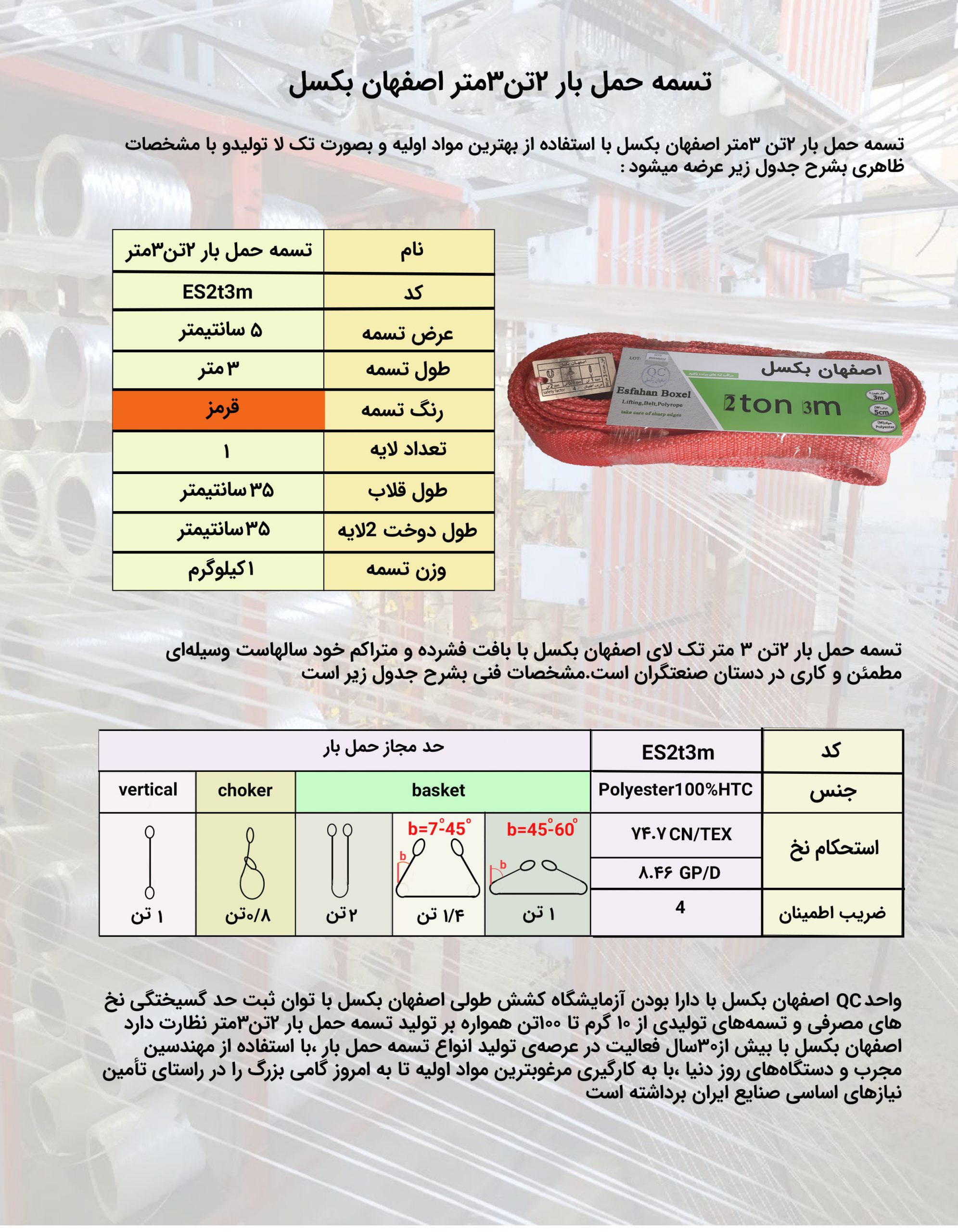اصفهان بکسل تولید کننده انواع تسمه حمل بار و بلت از 2تن تا 250تن