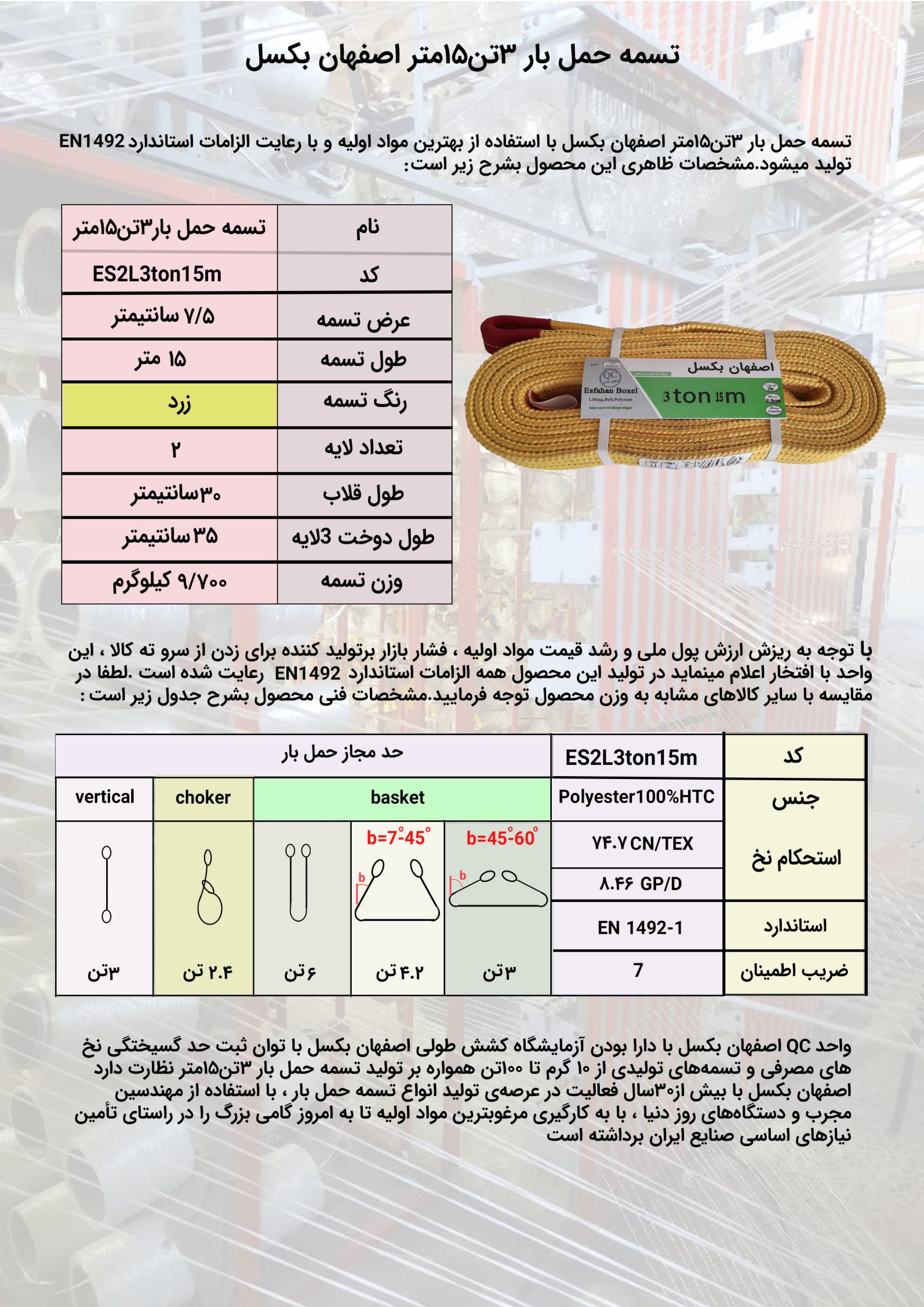 اصفهان بکسل تولید کننده انواع تسمه حمل بار و بلت از 2تن تا 250تن