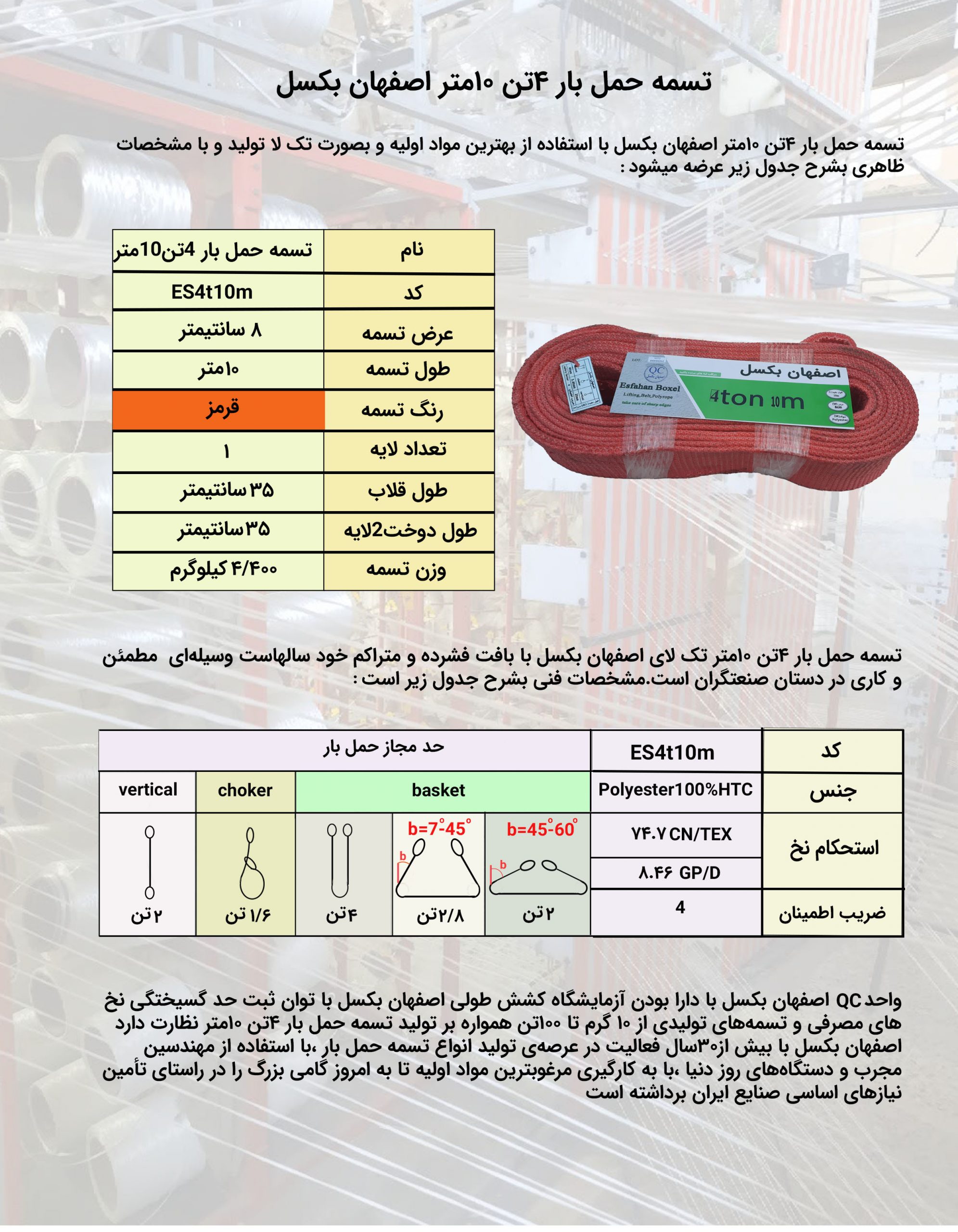 اصفهان بکسل تولید کننده انواع تسمه حمل بار و بلت از 2تن تا 250تن