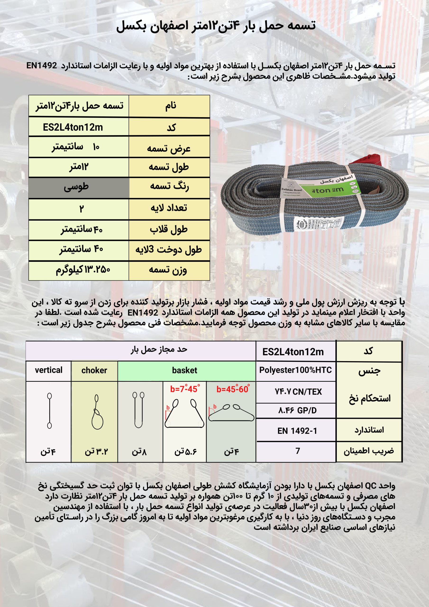 اصفهان بکسل تولید کننده انواع تسمه حمل بار و بلت از 2تن تا 250تن